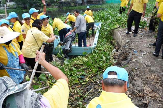 “Make a Good Things, With Our Heart” project consists of the volunteer activities to remove water hyacinth in Samrong canal, clean and improve the better scenery at the area of Bang Mueang municipality, Theparak road, Mueang district, Samut Prakan province with more than 200 volunteers from associates of DENSO (Thailand) Co., Ltd. (DNTH) and the government officers joined the activities.