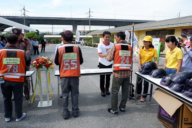 On 21 September 2018, DENSO (Thailand) Co., Ltd. (DNTH) participated in “Drive Motorcycles, Turn on the Light, Wear Helmets, Lock the Strap” campaign, organized by Wellgrow Industrial Estate on “Safety Month of Wellgrow” event. With the objective to create the sense of safety driving, learn how to wear the helmets correctly as well as to provide the knowledge and make the fully understanding on the traffic & driving regulations to respect the traffic rules. The helmets were also provided to motorcycles drivers around Wellgrow Industrial Estate who attended the activities total 100 persons.