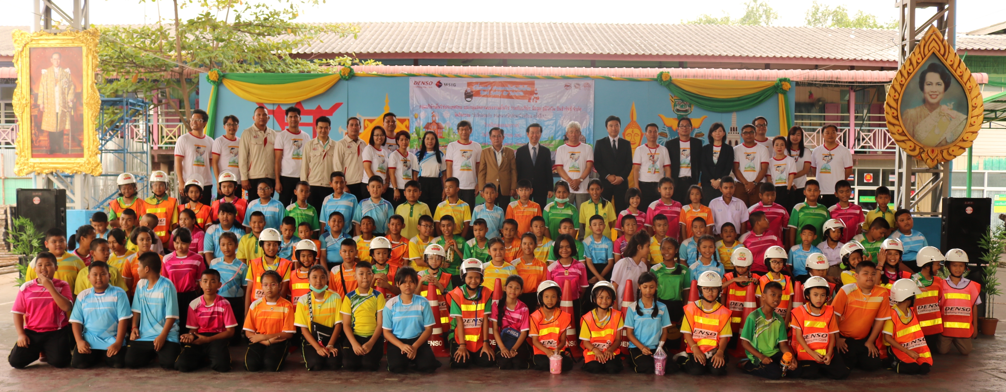 On November 14, 2018, Thai DENSO Group in collaboration with Mitsui Sumitomo Insurance Co., Ltd. Thailand Branch organized "Road Safety for Schools #7" at Klongmahawong School, Samutprakarn province. The two companies donated 650 helmets to the students in order to minimize severity of road accidents in motorized two wheelers. To continuously create consciousness and understanding of road safety among youth, Thai DENSO Group & Mitsui volunteers also provided a hands-on demonstration on the correct helmet usage and road safety games which stressed the importance of traffic safety and learning to stay safer as a passenger and a pedestrian.