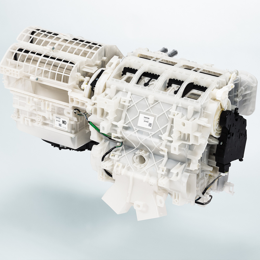 DENSO’s COA HVAC, named for its three main features – Common, Collaborative, and Compact Air Conditioner – is 20 percent smaller and more efficient than conventional units. Its fixed height and depth allow automakers to use it throughout models and segments, a world’s first. In 2015, DENSO received the Automotive News PACE (Premier Automotive Suppliers’ Contribution to Excellence) Award for the COA HVAC.